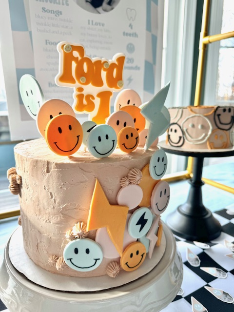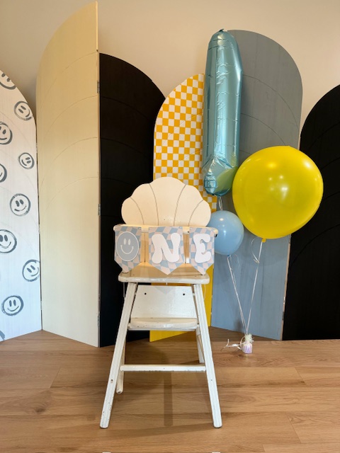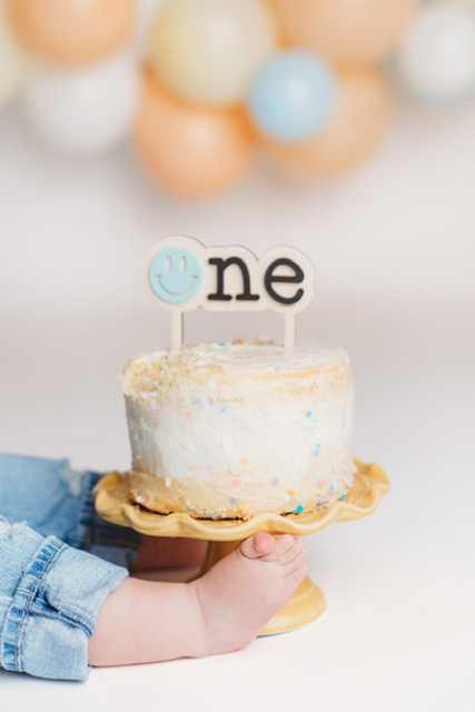 One thing I’ve learned as I continue to design my own celebrations is how easily you can get carried away with materials or ideas. My partner in crime, my mom, is always good at reeling me back in and reminding me that it’s about the small moments you create rather than filling every empty corner with stuff. I had two favorite moments throughout the celebration that we created. First, was this amazing food table seen in the photos above. I absolutely LOVE the way it turned out! It showcased our beautifully crafted cakes and desserts which were made locally right here in our hometown by the youngest, most talented baker, Kennedy’s Confections. (if you’re local to SE Michigan, be sure to check her out! Highly recommend) Another favorite moment of mine, was of course the cake smash area! I probably spent most of my prep time for the party on these backdrops I bought from Hobby Lobby. I bought two of them and I decided to paint to match the theme. I’m was happy with how they turned out and I think they will be fantastic to reuse for another event.
