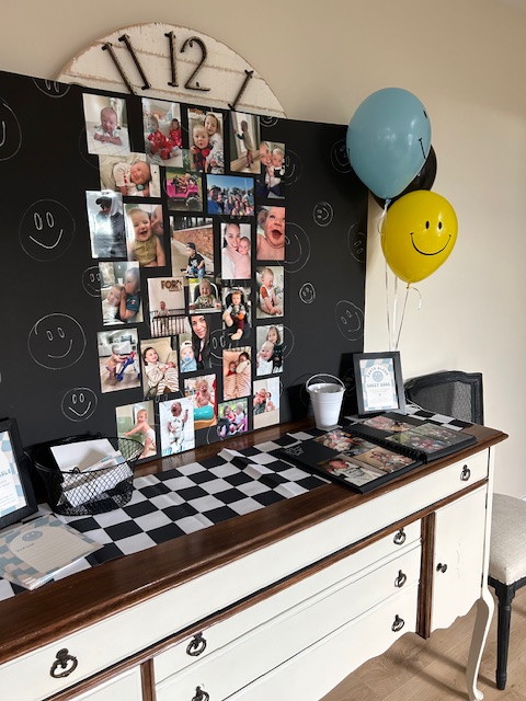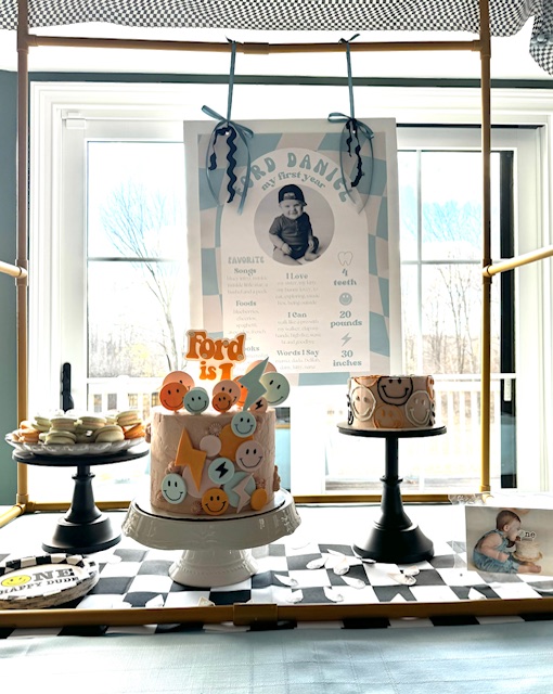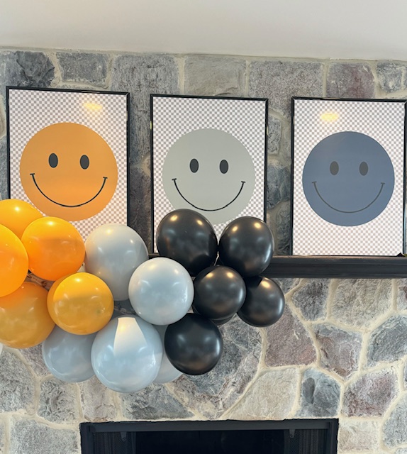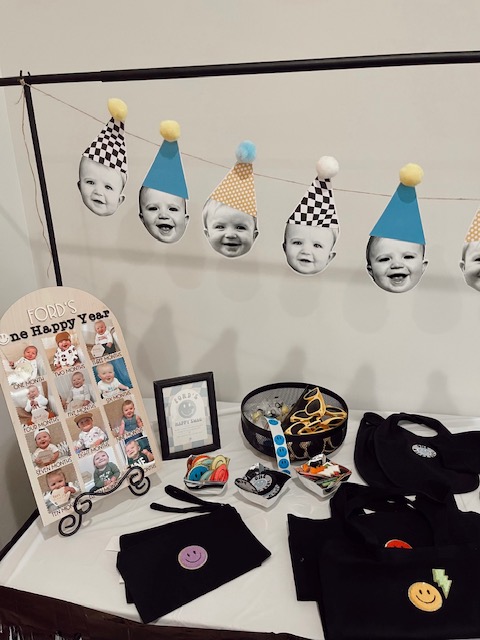 I had a fun space where you could create and take home your very own “One Happy Dude” merchandise as our party favors. I was able to create our very own custom patch to use as well as a bunch of other patch options our guests could choose from. We had tote bags, shirts, sweatshirts, and onsies in a variety of sizes. I also had a welcome area where guests could write Ford a special message that we would share with him on his 18th birthday. As well as a photo book of his entire year that family and friends could sign. And obviously boy birthday or not, flowers are a MUST! Looking back I’m proud of how this event came together! During preparation, I didn’t know if we could pull this birthday celebration off with everything our family was facing at the time. But we as a family owed it to ourselves, and especially to Ford, to celebrate the moments of happiness the past year had given us. Sharing and linking as much as I can from the party decorations below. As always, be sure to follow along and keep an eye on my Pinterest page. I’m continuously pinning my favorite trending things for the every event for every event hostess! Click here!